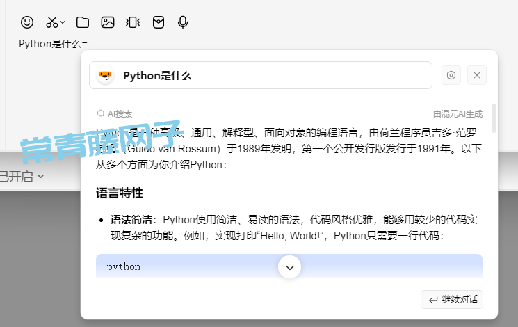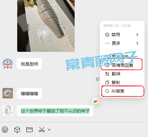 还有一个比较适合所有人的“AI创作”功能,让AI来创建高情商回复消息,选中需要回复的消息就能看到这个弹窗。