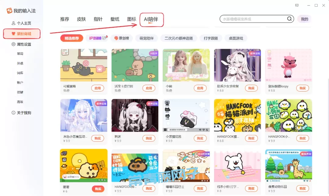 除了上述实用功能,搜狗输入法还整了一个“AI创作搭子”——可以领养宠物,在待机时宠物会自动弹出与你互动,可以进行食物投喂和文字交流,24h的打工搭子,让输入不再枯燥。