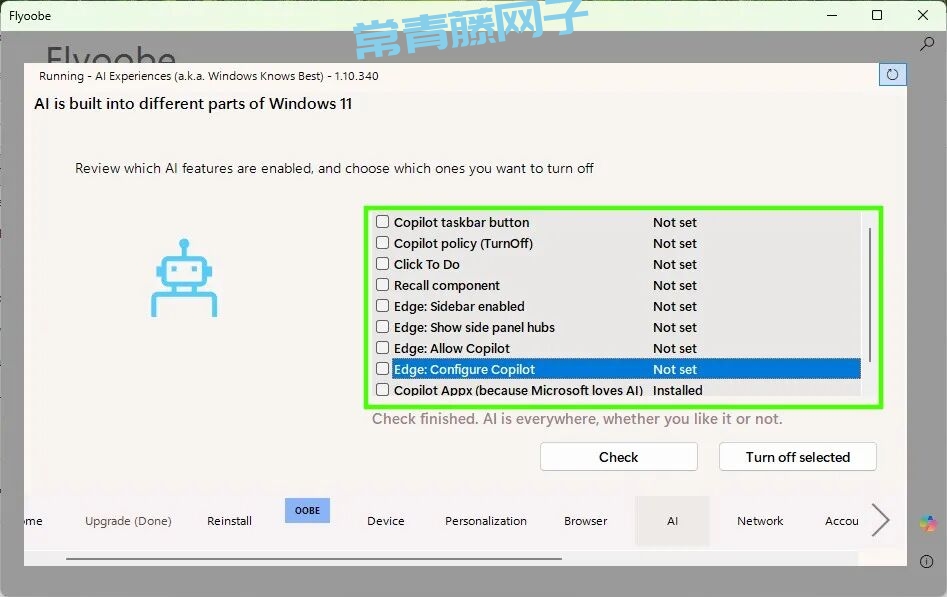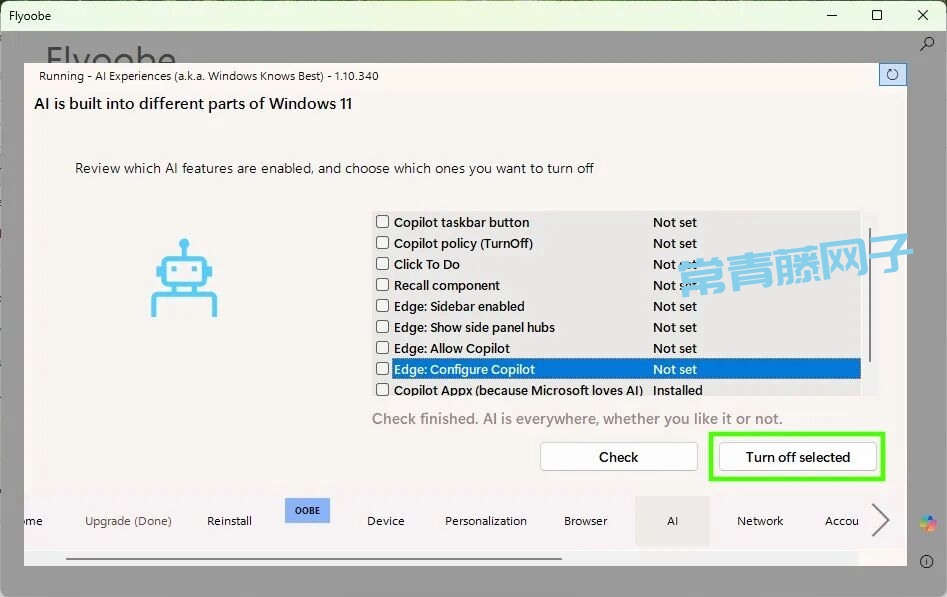 而使用 FlyOOBE 在安装过程中就能帮我们把这些东西筛选出来,我们只需要勾选不要的就能直接删除。