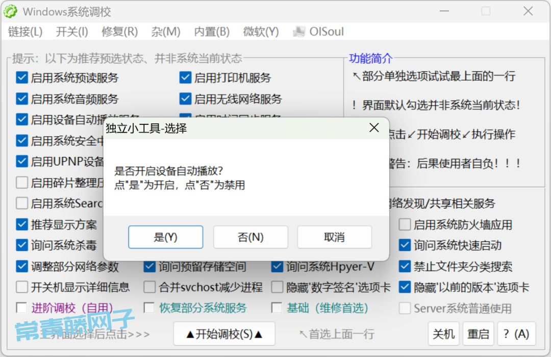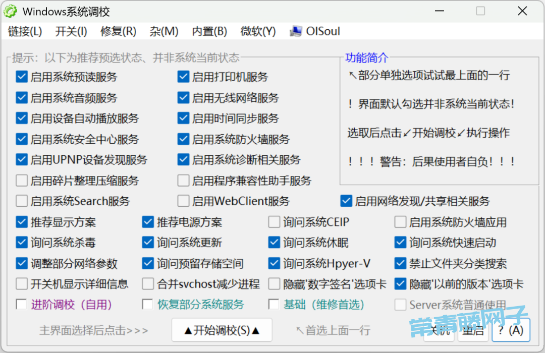 OlSoul 一款界面极其敷衍,功能极其丰富的 Windows 系统调校程序