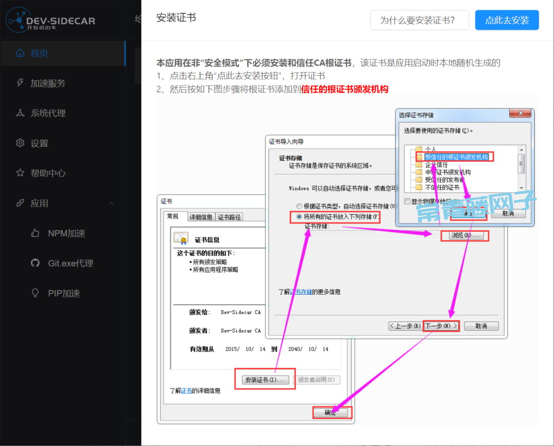 第一次打开会提示需要安装证书: