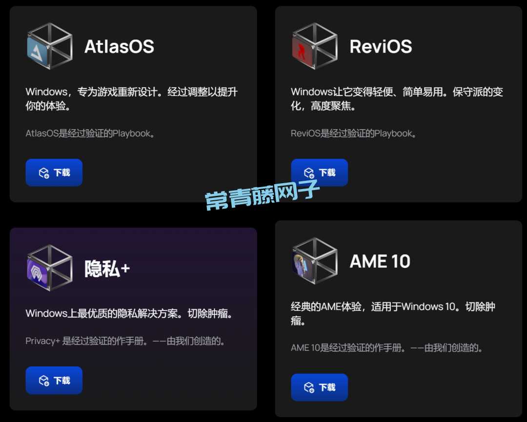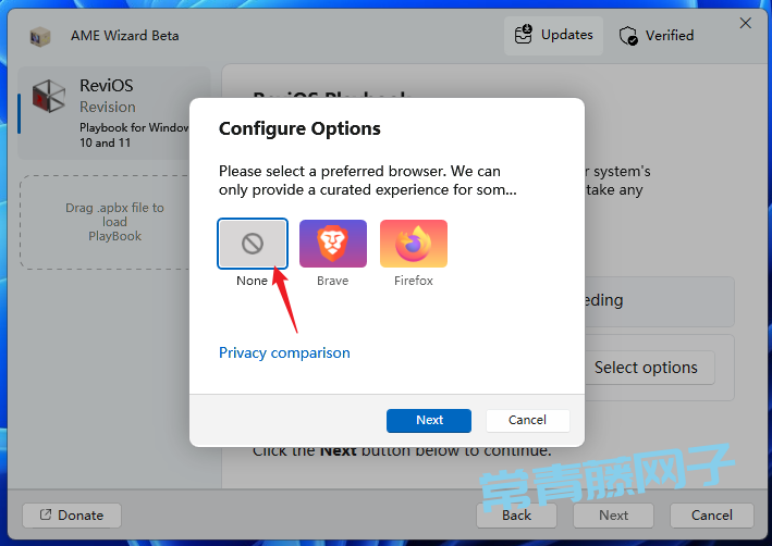 「AME Wizard」软件相当于一个壳,需要一个配置文件搭配使用,这个文件官网称之为「PlayBook」,即剧本。官网提供了多个不同的“剧本”,也就是有不同的优化配置,例如下图就有四个不同的配置文件。
