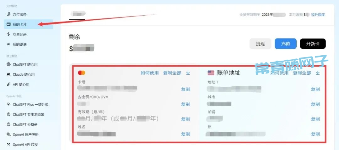 与实体信用卡不同,虚拟信用卡是先充值,后扣费的方式。因此,在我们订阅任意 AI 产品之前,需要先为虚拟信用卡充值。