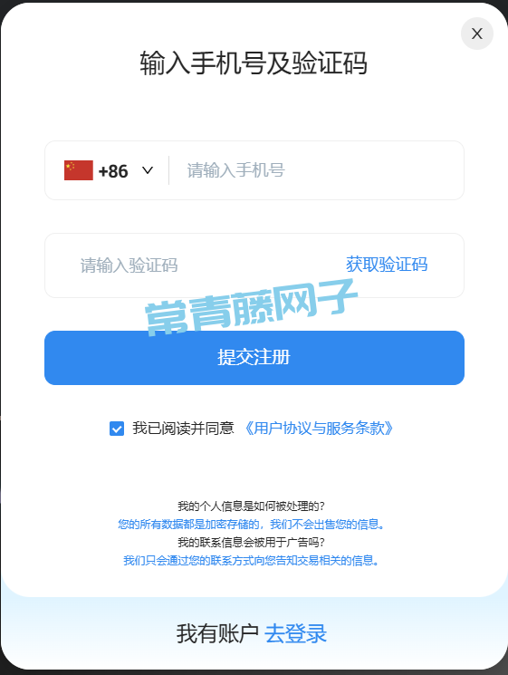 ※ 请使用国内的手机号注册,不用担心接收不到验证码。