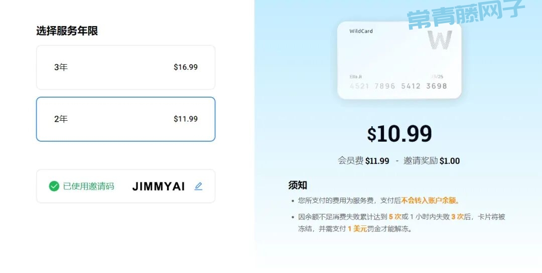 推荐选择【2年】的服务年限,性价比较高。使用吉米的推荐码【JIMMYAI】还可以再节约 1 美元。