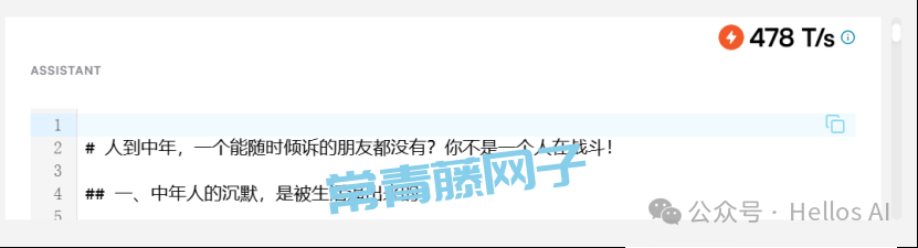 速度非常之快,我们可以查看到它的速度是478T/s,也就是说这篇3000字的文章它只用了7~8秒的时间就完成了。