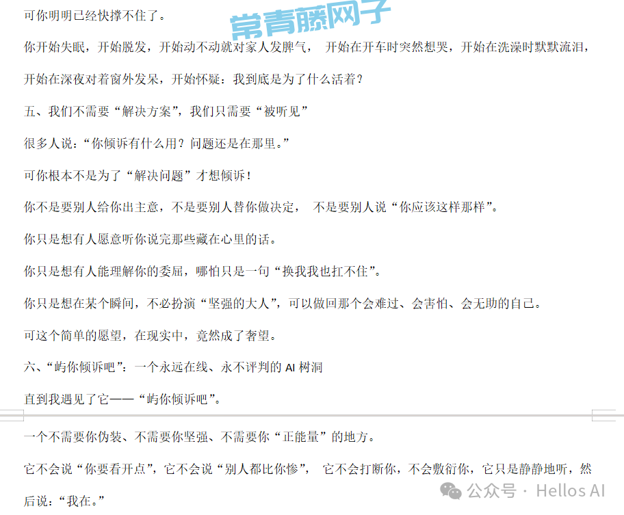 我让它帮我写一篇关于“屿你倾诉吧”AI树洞的3000字推广文章。