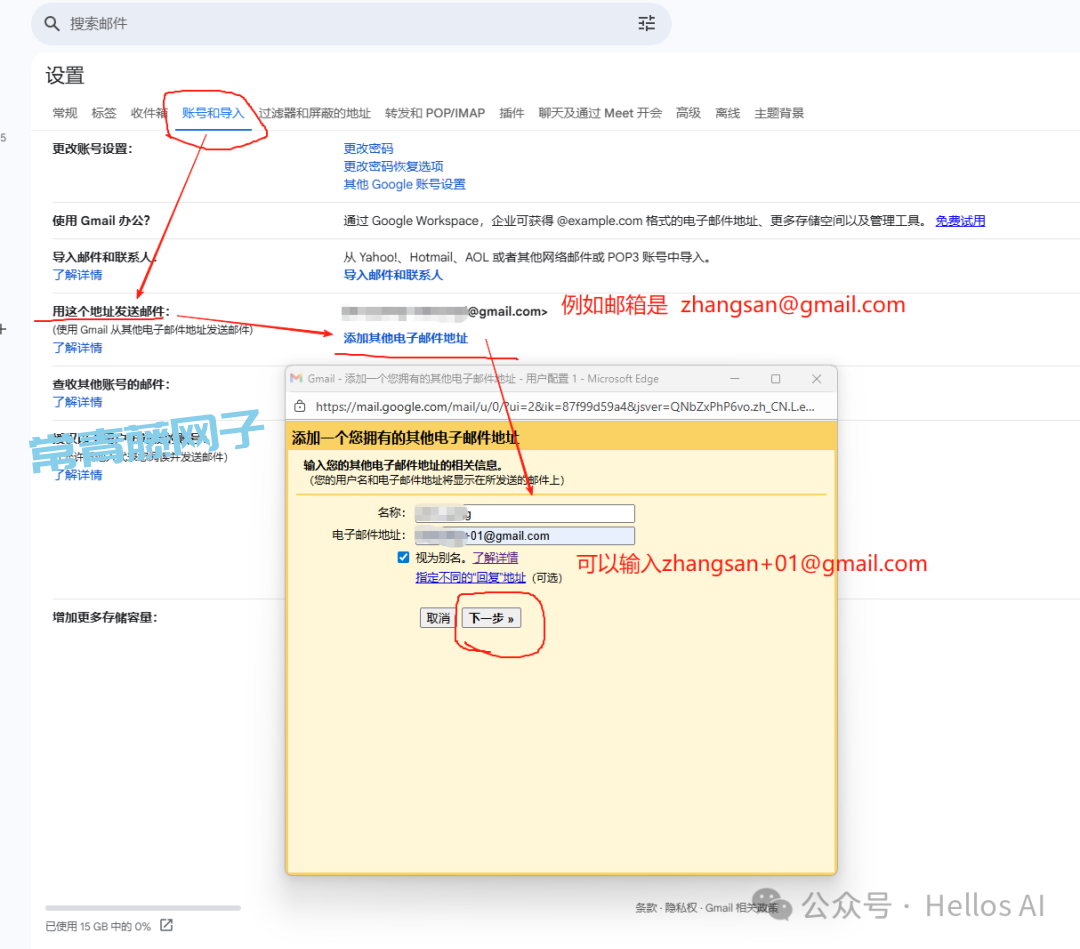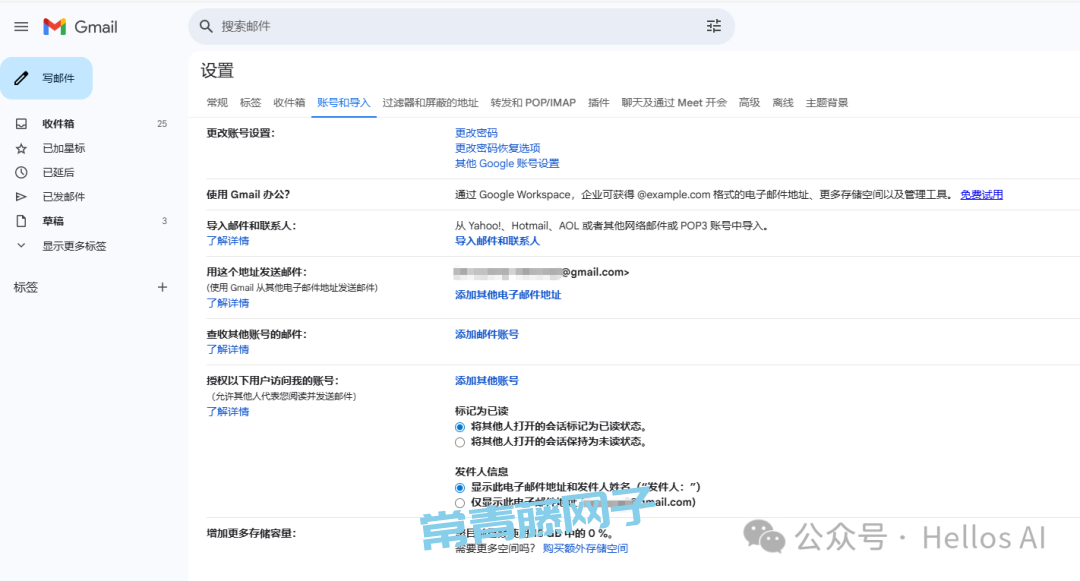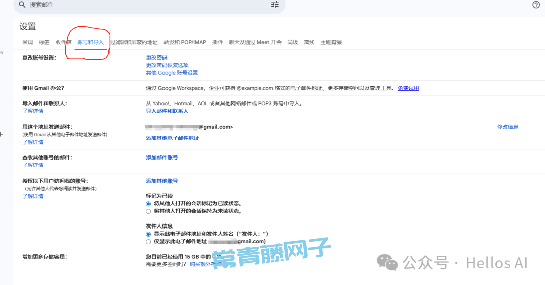点击"账号和导入"页面,我们添加邮箱别名主要是在这里!