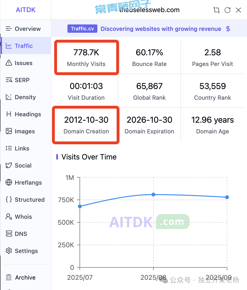 网站是2012年创立的,2025年9月的访问量接近80万,最近几个月的流量总体稳定。网站的全部功能只有一个:点击首页的按钮,会随机跳转到另外一个没什么实用性,但或搞怪或创意十足的网站。