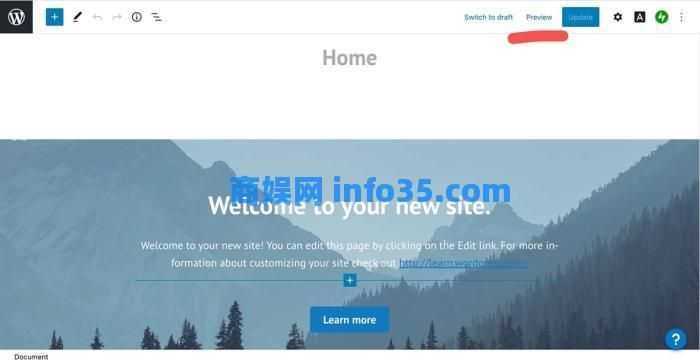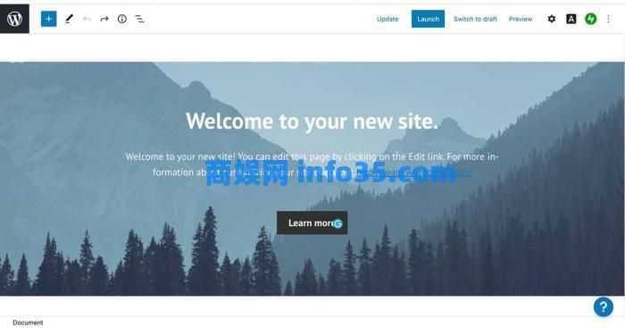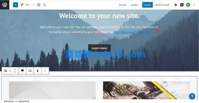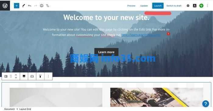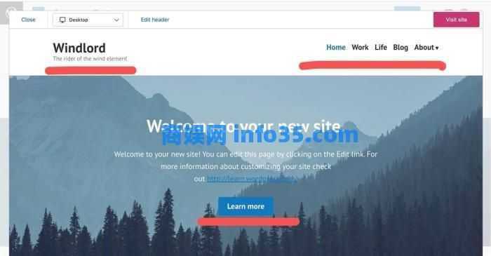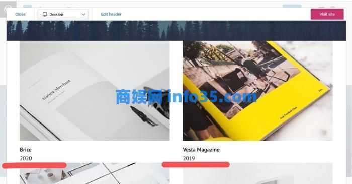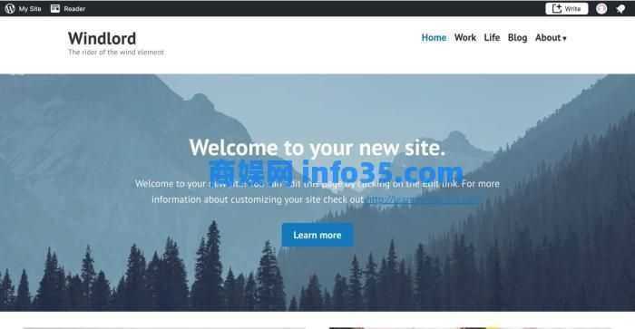 除了主题图片可以进行编辑以外,网页下拉后是博客的最新更新示例。事实上,就一个网站而言,这些内容显得太少了,就像个博客的主页一般。不过WordPress是靠博客起家的,有这个毛病也无可厚非。