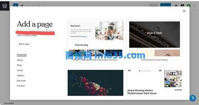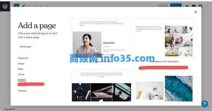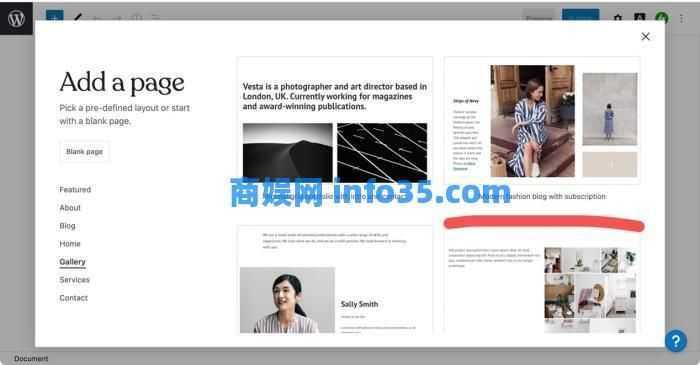 新建的页面计划讲诉生活方面的内容,因而选择了“Gallery”里面的模板。