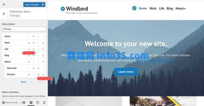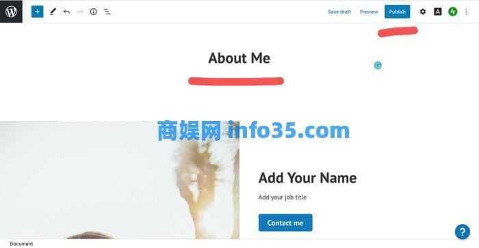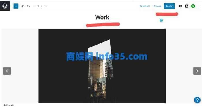 把“Portfolio”改成了“Work”,随后点击右上角的“Publish”发布。