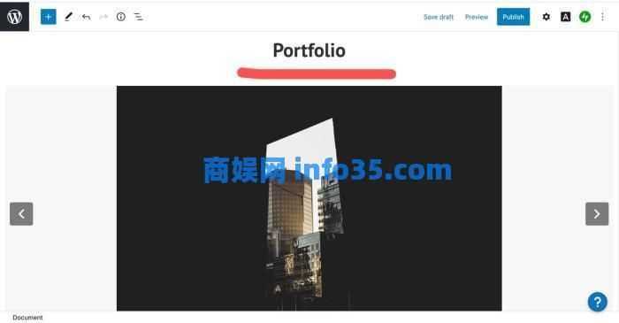 我选择了默认里的Portfolio,这是一个页首是幻灯片页面内有多个项目可以编辑的形式。