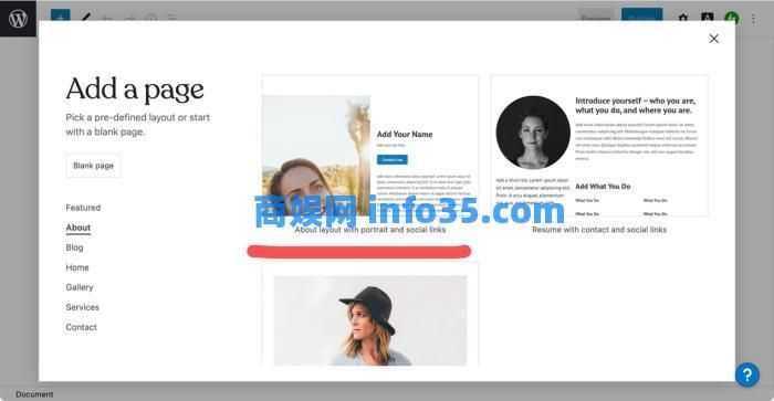 本次新建的页面是个人资料页,所以选择了“About”里的模版。