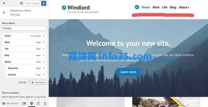 排序完毕后可以看到,菜单栏已经显示在主页的上方。网站建设又告一段落。