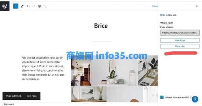 发布页面确认时,在右侧把该页面的链接复制下来。