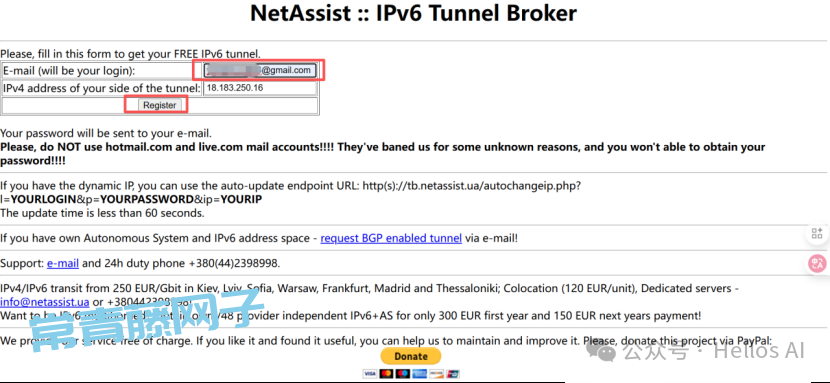 我输入的是Gmail邮箱,邮箱下方这个IP是一个默认节点IP,我们不用修改,使用默认的就好。然后点击“register”按钮。它会提示已经发送一封邮件到我们的邮箱。