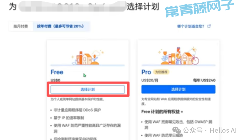 进入到新的页面,选择Free下方的选择计划