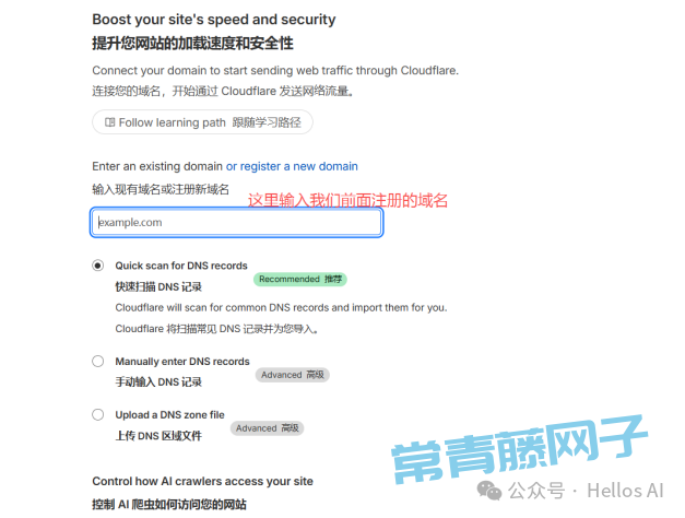 打开CF: https://dash.cloudflare.com/ ,使用我们注册时填入的Gmail邮箱登录。在页面中输入注册的域名