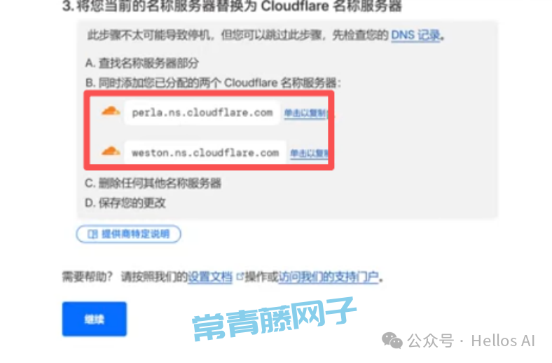 再回到cloudflare,点击“继续”。