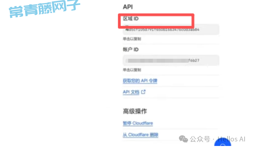 点击域名进入到新的页面,往下翻,找到区域ID,复制区域ID。