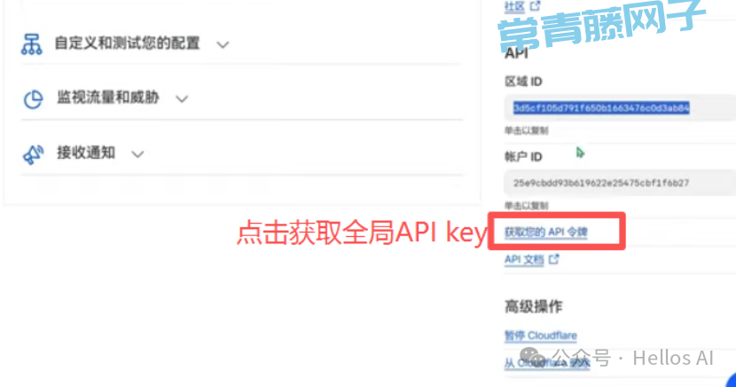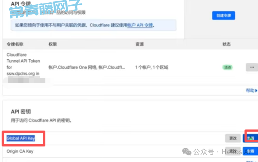 进入到API令牌页面,找到下图红框标注的“Global API Key”这就是我们要找的全局API key