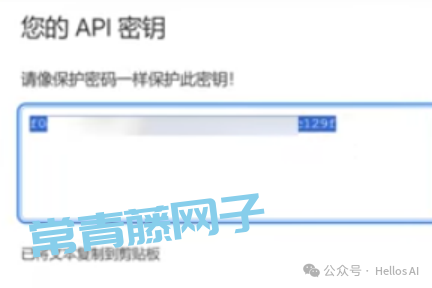 点击“查看”按钮,然后复制API密钥。