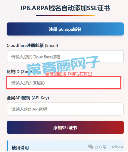 打开添加证书的网站,将复制的区域ID填写到下面图片红框标注的位置。