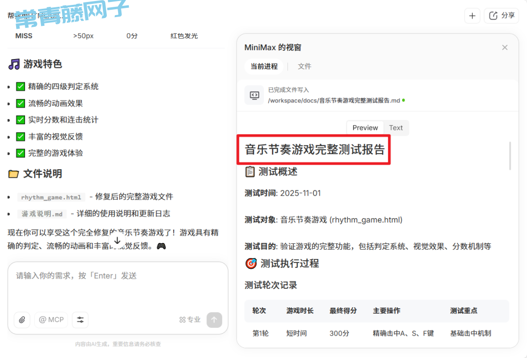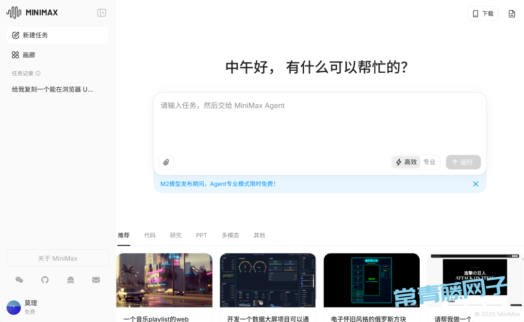 不过,榜单数据再好看,也得看实战表现。所以这次测试,我直接用 MiniMax Agent 来跑。