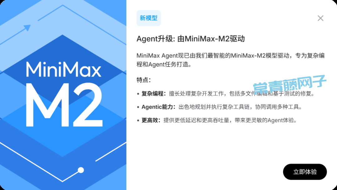 若你只是想试试模型能力,直接上 Agent 就够了。它默认接入的就是最新的 M2 模型,速度快得离谱。