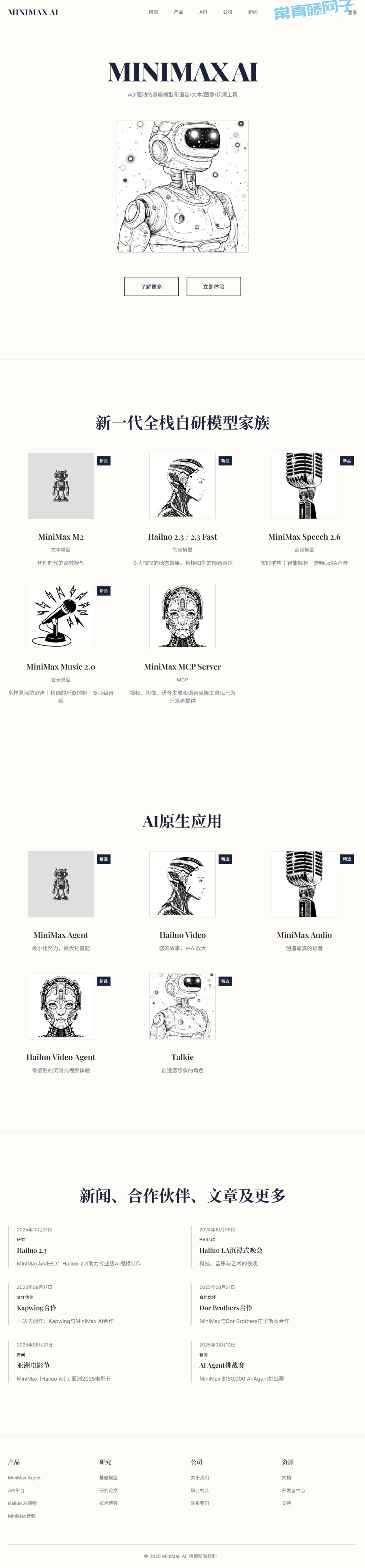 复刻MiniMax官网(https://www.minimaxi.com)的首页布局。但是,不要使用它原来的现代风格。我要求你按以下要求来重新设计整个页面: