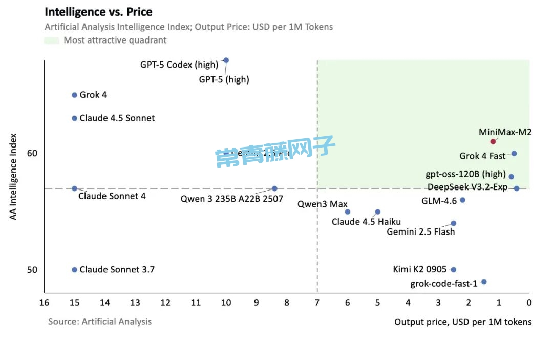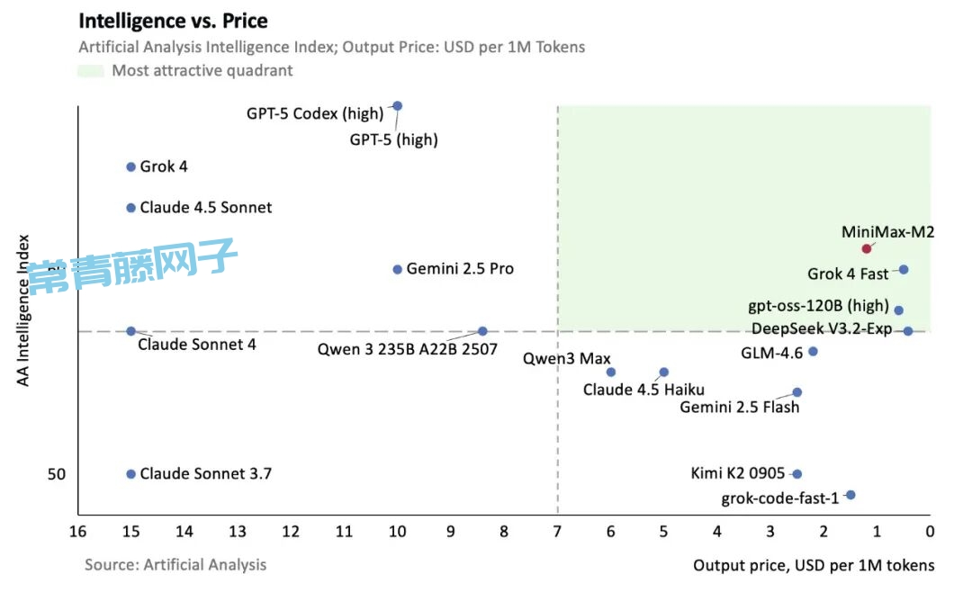 你可能对这个“三角”没概念,我来翻译一下,M2 的推理速度比 Claude 4.5 Sonnet 快了接近一倍,而API价格,却只有对方的8%。