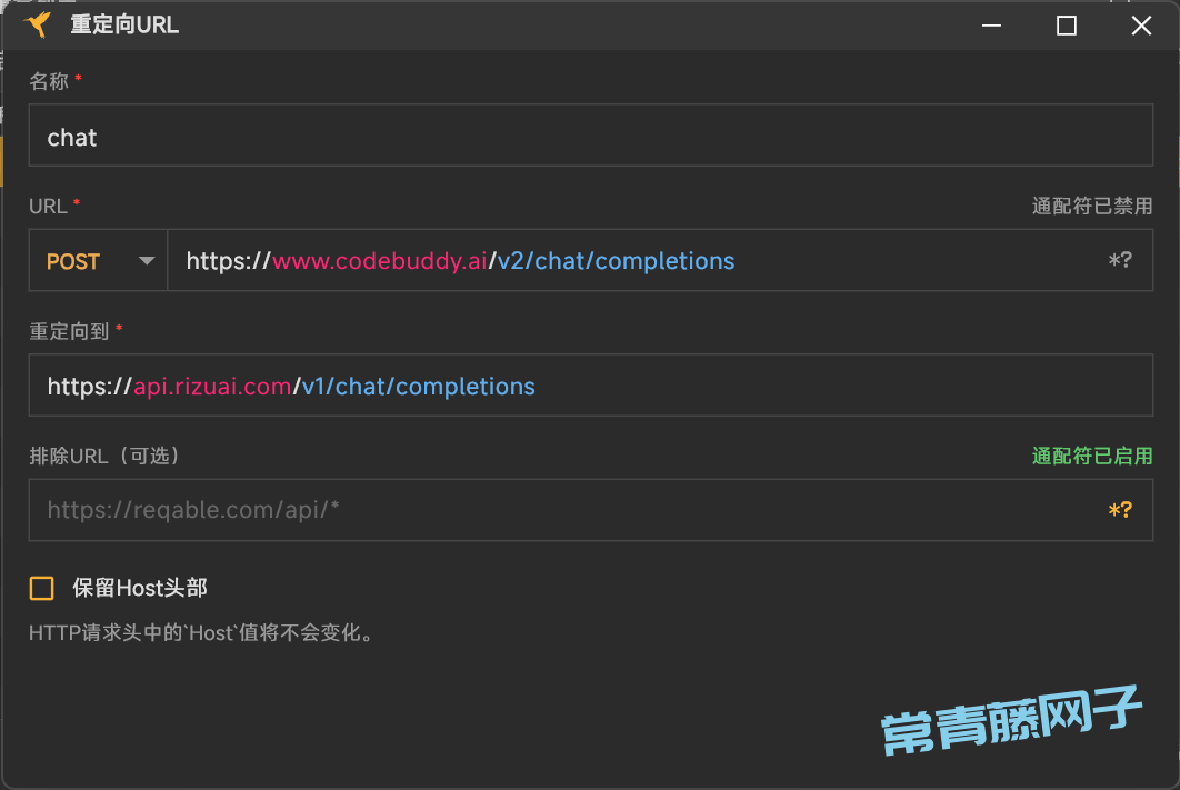 重定向的地址填写我们的自定义大模型接口地址,比如: