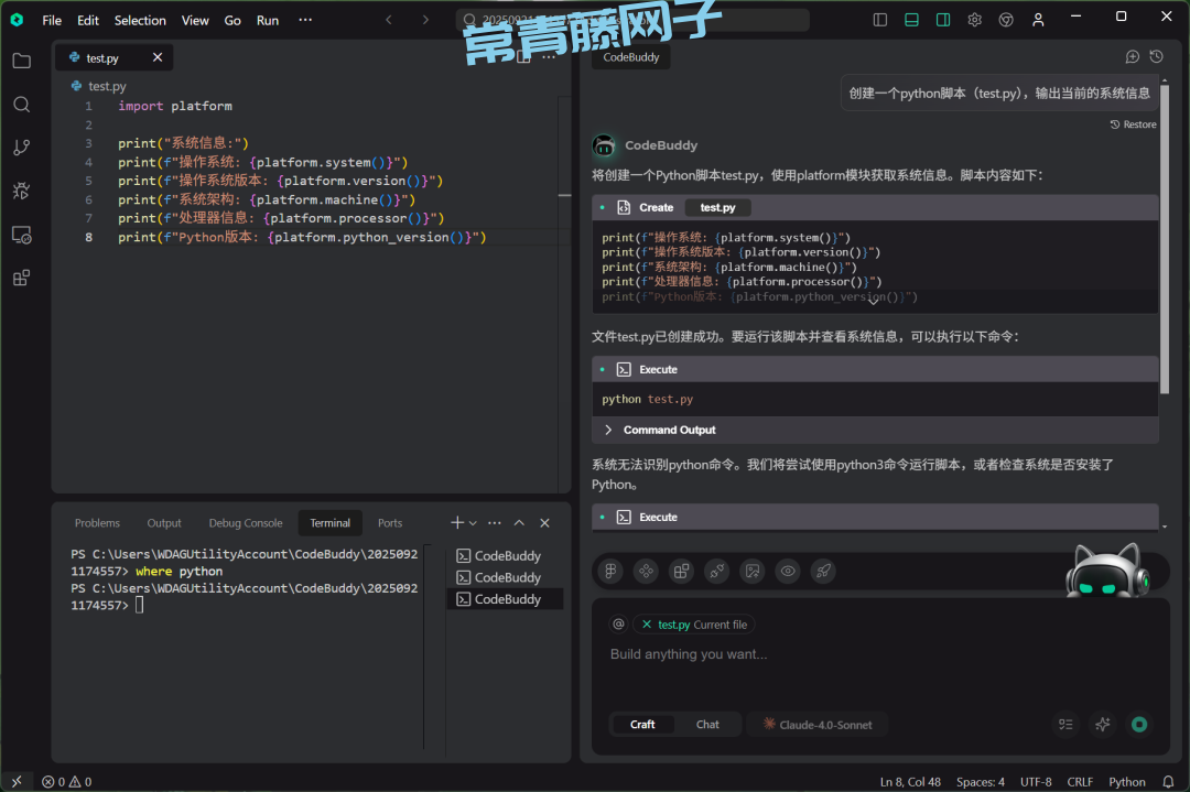 我们最后再测试一下,让CodeBuddy运行一个任务: