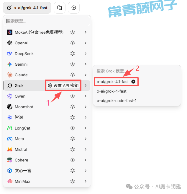 2、点击设置API密钥,输入下面所示的免费模型API-key: