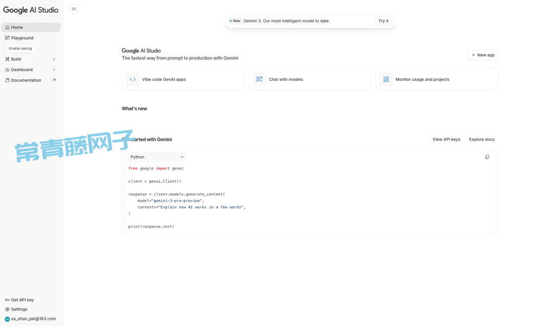 3️⃣ Google AI Studio(百宝箱 · 免费不限次)