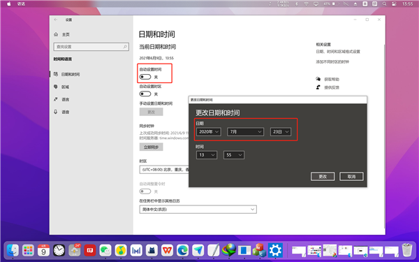 2.关闭「自动设置时间」选项,并将日期调回到2020年7月23日