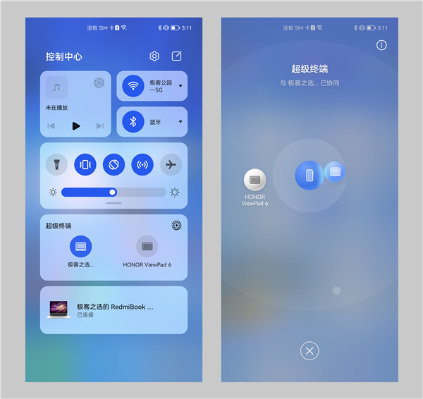 3.打开华为电脑管家,在手机的「控制中心-超级终端」中搜索设备