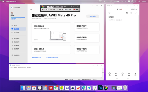 华为的多屏协同还有很多功能和玩法,比如在电脑上接打电话、利用华为分享对手机文件进行管理和备份;而在手机一端,还可以对电脑桌面进行截屏或录屏。更多具体的功能可以参看官网详细介绍:多屏协同介绍