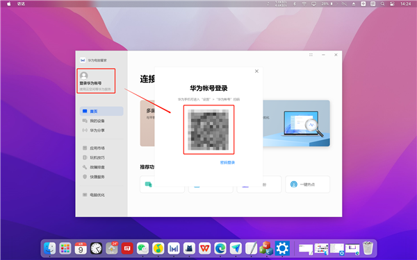 1.华为设备间的协同需要基于同一账号,首先在电脑管家中登录自己的华为账号
