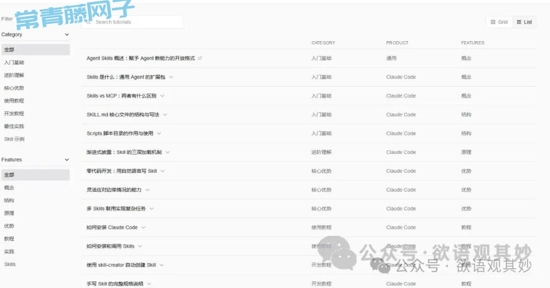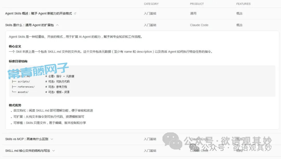 有一部分是跳转会原网站学习查看,有一些内容少的,可以直接点击下拉查看,对于帮助理解Skill的各方面情况很有帮助。