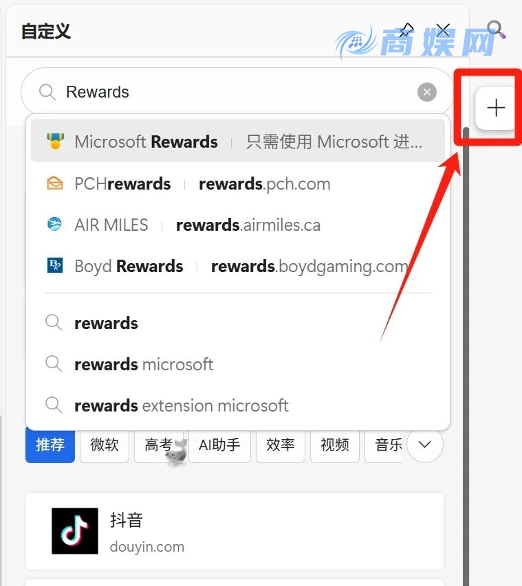 在右侧点击“+”,搜索“Rewards”,选择第一个。