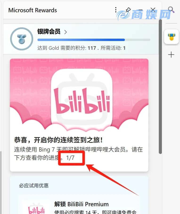 最后,保持在活动期间内连续使用 7 天 Bing 搜索,就能直接获得 B 站 30 天大会员