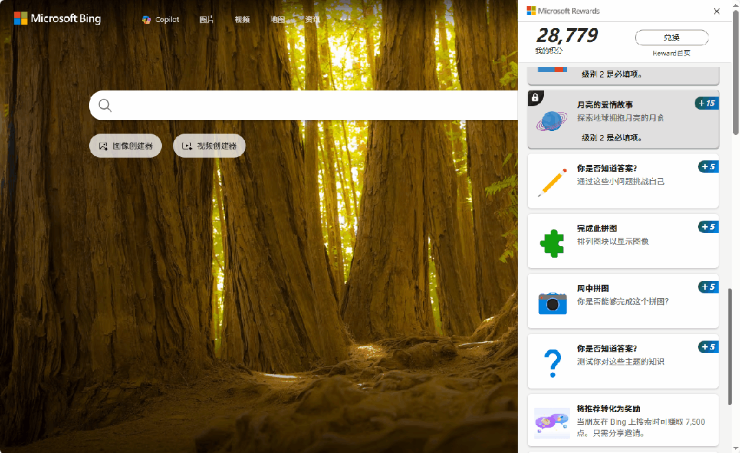 对微软来说,这是推广自家搜索引擎的方式;对咱们来说,反正每天都要搜东西,顺手就把积分攒了。