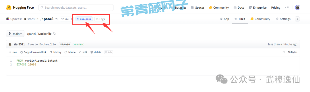 以上工作做完后,Hugging Face Spaces 会自动开始构建和部署1Panel运维管理面板。