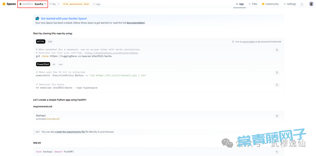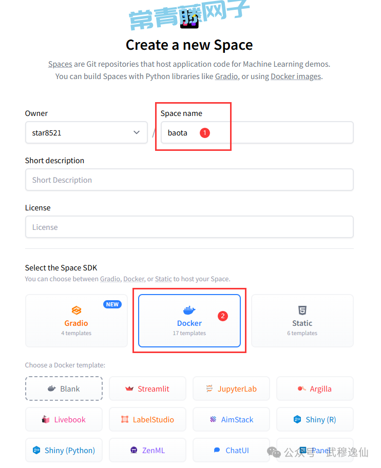 Hugging Face (https://huggingface.co/)提供了2核 CPU、16G 内存、50G 硬盘空间的免费云服务器,提供了3种模板:Gradio、Docker、静态HTML,可以很方便的来部署你的应用。我们本次就通过使用Docker来部署宝塔面板(BT Panel,一款流行的 Linux 服务器运维工具,支持网站部署、数据库管理、Docker 容器等)。宝塔面板的Docker镜像:cyberbolt/baota 是精简版,也可使用 btpanel/baota 或 ywfwj2008/bt-pane,但 Spaces 的 Docker 环境是临时性的(无持久存储),仅适合测试哟。