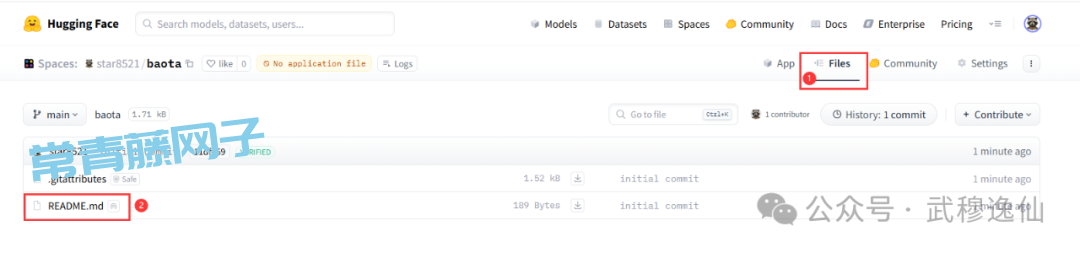 Space创建后,进入Space 工作台,点击【Files】,修改README.md 文件,点击README.md,点击 edit