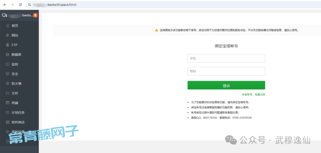 访问宝塔面板,网址是https://[YourName]-baota.hf.space/