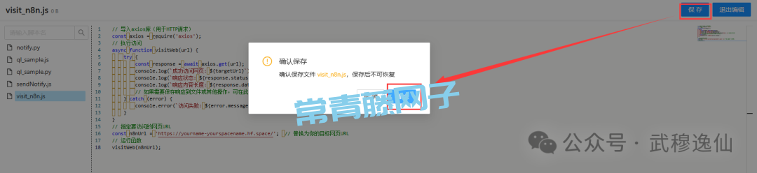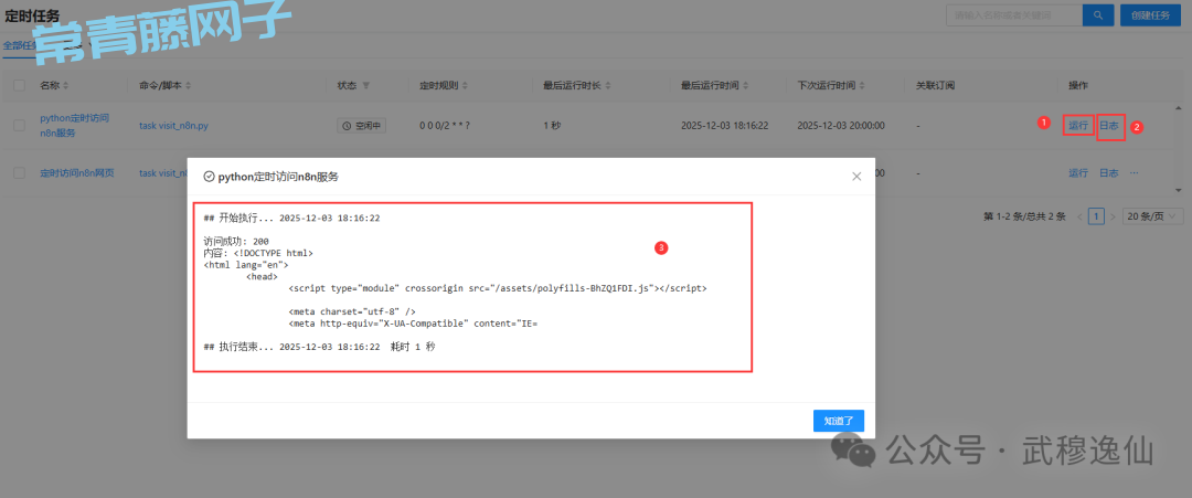 说明:这个js脚本会定时GET请求指定URL,并打印结果到日志。你可以修改n8nUrl为你想访问的网页(如 https://yourname-yourspacename.hf.space/ )。如果需要模拟浏览器(带Cookie、User-Agent),可在axios.get中添加headers选项。