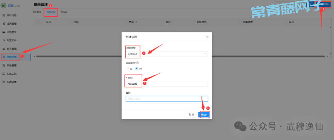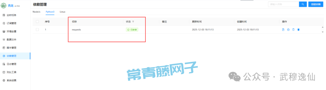 进入依赖管理(左侧菜单),搜索并安装python的requests 依赖